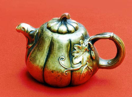 銅茶壺金屬用具是指由金、銀、銅、鐵、錫等金屬材料制作而成的器具。它是我國最古老的日用器具之一,早在公元前18世紀(jì)至公元前221年秦始皇統(tǒng)一中國之前的1500年間,青銅器就得到了廣泛的應(yīng)用,先人用青銅制作盤盛水,制作爵、尊盛酒,這些青銅器皿自然也可用來盛茶。自秦漢至六朝,茶葉作為飲料已漸成風(fēng)尚,茶具也逐漸從與其他飲具共用中分離出來。大約到南北朝時,我國出現(xiàn)了包括飲茶器皿在內(nèi)的金銀器具。到隋唐時,金銀器具的制作達到高峰。本世紀(jì)80年代中期,陜西扶風(fēng)法門寺出土的一套由唐僖宗供奉的鎏金茶具,可謂是金屬茶具中罕見的稀世珍寶。但從宋代開始,古人對金屬茶具褒貶不一。貯茶錫罐元代以后,特別是從明代開始,隨著茶類的創(chuàng)新,飲茶方法的改變,以及陶瓷茶具的興起,才使包括銀質(zhì)器具在內(nèi)的金屬茶具逐漸消失,尤其是用錫、鐵、鉛等金屬制作的茶具,用它們來煮水泡茶,被認(rèn)為會使;茶味走樣以致很少有人使用。但用金屬制成貯茶器具,如錫瓶、錫罐等,卻屢見不鮮。這是因為金屬貯茶器具的密閉性要比紙、竹、木、瓷、陶等好,具有較好的防潮、避光性能,這樣更有利于散茶的保藏。因此,用錫制作的貯茶器具,至今仍流行于世。