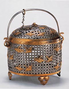 鎏金飛鴻球路紋銀籠子 用于炙茶餅用。