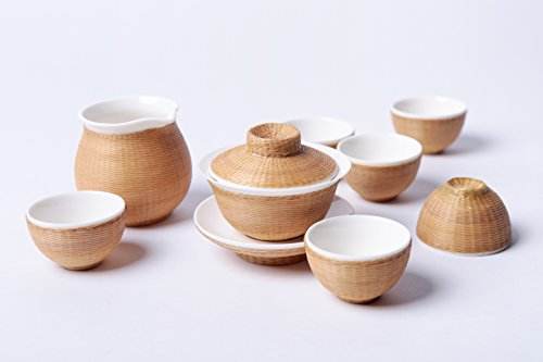 到了清朝,市面上出現(xiàn)了一種竹編茶具,此類茶具是由瓷胎搭配外部竹編包裹而成,內(nèi)胎多為陶瓷材質(zhì),包裹部分選用精挑 細(xì)選的慈竹,經(jīng)過破竹、去節(jié)、劃絲等十幾道工序,加工后的竹絲細(xì)如青絲,經(jīng)上色處理后,按茶具的形態(tài)大小編織而成,形成嚴(yán)密包裹胎體的外衣。且在泡茶過程中加上竹編外衣的保護,可 減少茶具對皮膚造成的灼熱感。