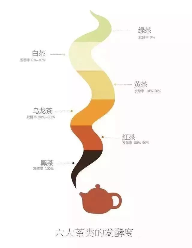 三、六大茶類的發(fā)酵程度排序
