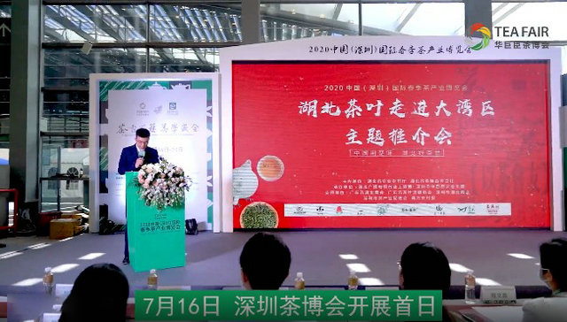 7月16日,湖北茶葉走進(jìn)大灣區(qū)主題推介會(huì),在深圳茶博會(huì)1號(hào)館茶文化活動(dòng)區(qū)舉辦。湖北省農(nóng)業(yè)農(nóng)村廳市場(chǎng)與信息化處處長(zhǎng)蔡俊松先生、湖北省供銷社現(xiàn)代流通處處長(zhǎng)程文霞女士、湖北廣播電視臺(tái)壟上(集團(tuán))頻道黨委書記、董事長(zhǎng)鄧海先生、華巨臣實(shí)業(yè)集團(tuán)副總裁向飛先生出席本次活動(dòng)并致辭,對(duì)湖北茶企品牌建設(shè)寄予厚望。