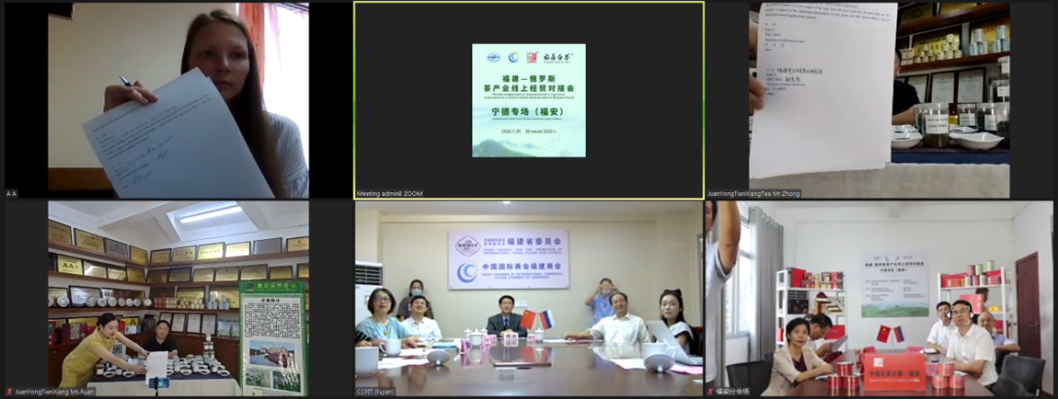 7月30日下午,由中國國際貿(mào)易促進委員會福建省委員會、中國國際商會福建商會、寧德市人民政府、俄羅斯國家工商會、俄羅斯下諾夫哥羅德州工商會聯(lián)合主辦,寧德市貿(mào)促會、福安市人民政府、福鼎市人民政府、21世紀海上絲綢之路商務理事會福建聯(lián)絡(luò)辦公室承辦,福安市貿(mào)促會、福鼎市貿(mào)促會、福安市茶業(yè)管理局、21世紀海上絲綢之路商務理事會福建聯(lián)絡(luò)辦公室武夷山工作站、福建世創(chuàng)商務展覽有限公司執(zhí)行承辦的“福建—俄羅斯茶產(chǎn)業(yè)線上經(jīng)貿(mào)對接會寧德專場(福安)”通過跨境會議系統(tǒng)平臺成功舉行。省貿(mào)促會傅健副會長、陳揚副會長、楊立云秘書長,以及聯(lián)絡(luò)部、貿(mào)易投資促進部、事業(yè)發(fā)展部負責人在省貿(mào)促會主會場出席了專場對接會。來自俄羅斯等獨聯(lián)體國家的近50名境外商協(xié)會、經(jīng)貿(mào)促進機構(gòu)代表和采購商,以及17家寧德等地優(yōu)質(zhì)茶企一同參加線上對接活動。