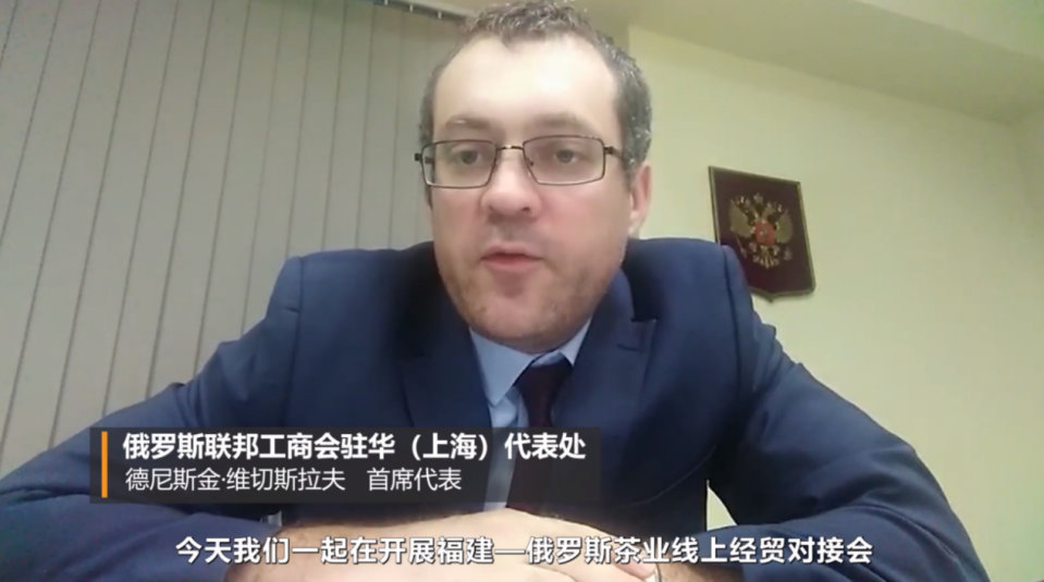 俄羅斯聯(lián)邦工商會駐華(上海)首席代表德尼斯金·維切斯拉夫表示,很高興通過在線對接會和網(wǎng)絡(luò)交流會形式,與福建省貿(mào)促會合作一起推廣福建茶產(chǎn)業(yè)。此次線上活動是恢復國際貿(mào)易業(yè)務的象征之一,一起見證了不同國家的商人企業(yè)家們是如何找到一條發(fā)展國際關(guān)系的新路,祝愿俄羅斯和福建在經(jīng)貿(mào)合作上更進一步。