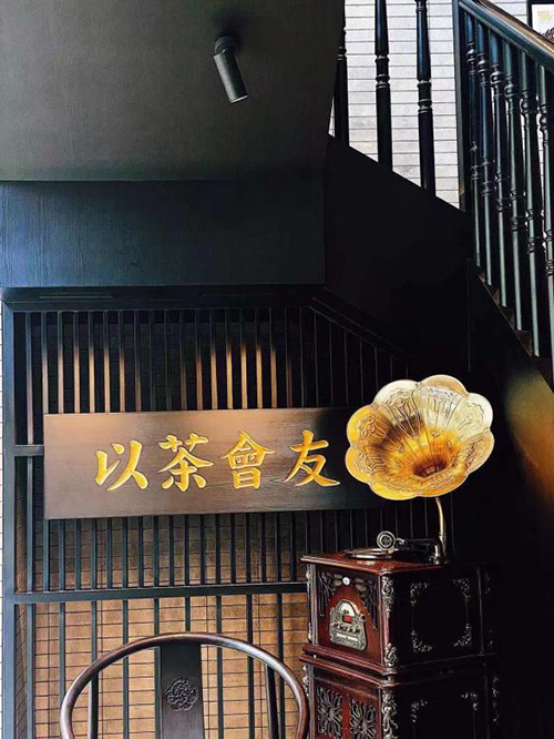 以茶會友的金字招牌上書“以茶會友”招徠過往賓客,配上傳統(tǒng)八仙桌與復(fù)古留聲機。在這個空間中喜茶靈感與廣式茶樓印象交融,傳統(tǒng)元素在打散重組中收獲新意。
