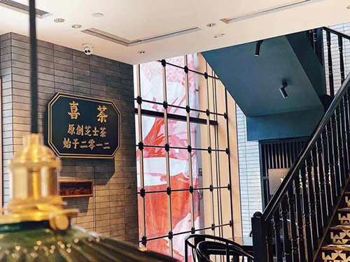 喜茶起源于江門,成長于廣東。將新茶風(fēng)帶給世界的同時,喜茶仍在回頭凝視自身中流淌的廣府文化基因。喜茶整合永慶坊傳統(tǒng)建筑與廣東茶文化特點,讓新與舊達到平衡,使店面擁有現(xiàn)代藝術(shù)也有傳統(tǒng)老廣氣息,并將老廣州元素融入空間:三雕一彩一繡,青石磚,銅板浮雕,滿洲窗、趟櫳門、騎樓街,讓嶺南文化在新式茶文化中靈動延續(xù)。